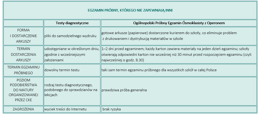 Ogólnopolski Próbny Egzamin Ósmoklasisty z Operonem to nie test diagnostyczny. To coś znacznie poważniejszego. Czym zatem się wyróżnia?
