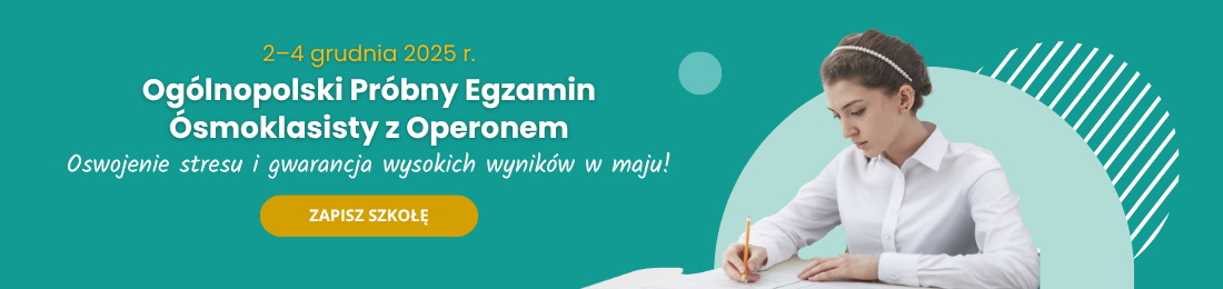 Co jeszcze można zrobić, aby pomóc ósmoklasistom w oswojeniu stresu egzaminacyjnego? Co roku tysiące szkół biorą udział w Ogólnopolskim Próbnym Egzaminie Ósmoklasisty z Operonem. Dzięki temu uczniowie mogą przekonać się, jaka jest atmosfera egzaminu państwowego i jak on przebiega. To także okazja dla nich do sprawdzenia swoich sił w rozwiązywaniu zadań egzaminacyjnych z zachowaniem rygoru czasu.