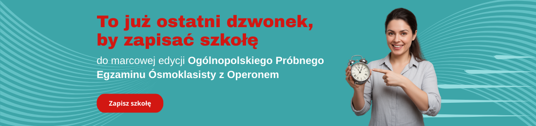 Ogólnopolski Próbny Egzamin Ósmoklasisty z Operonem warto potraktować nie tylko jako sposób weryfikacji wiedzy i umiejętności, lecz także jako próbę generalną przed egzaminem państwowym, która pomoże uczniom oswoić się z formułą egzaminu.