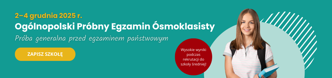 Państwowy egzamin ósmoklasisty to dla uczniów źródło stresu i ogromne wyzwanie – od jego wyniku zależy rekrutacja do szkoły średniej. Udział w Ogólnopolskim Próbnym Egzaminie Ósmoklasisty pomaga oswoić ten stres i pokazuje, ile jeszcze można zrobić, by osiągnąć cel. Omówienie wyników egzaminu uświadamia uczniom, co i ile powinni jeszcze powtórzyć. Z doświadczenia wiemy, że działa to mobilizująco i realnie wspiera proces przygotowań.