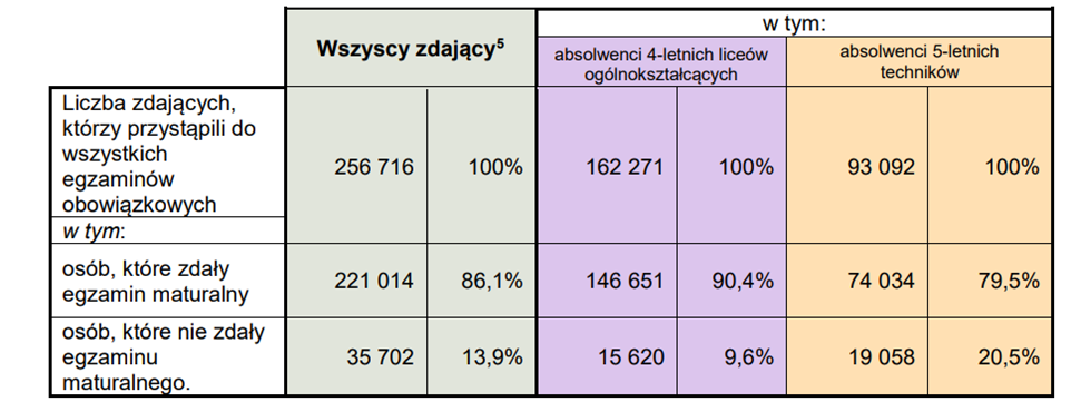- po egzaminach poprawkowych odsetek wzrósł do 86,1% (licea – 90,4%, technika – 79,5%).