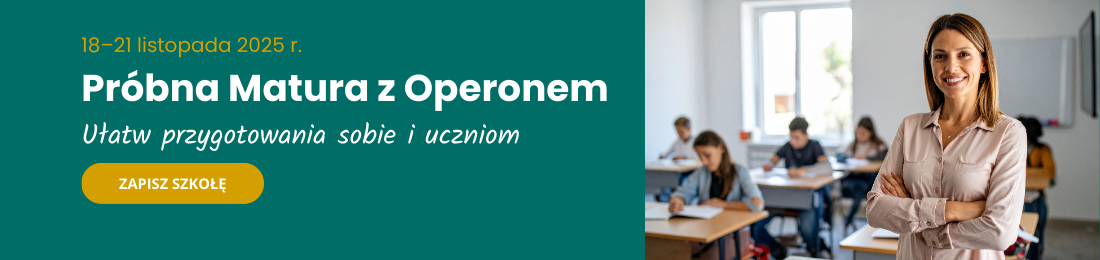 Egzaminy próbne z Operonem to istotny etap przygotowań do matury. Dają nauczycielom możliwość rzetelnego sprawdzenia poziomu wiedzy i umiejętności uczniów już pod koniec pierwszego semestru. Dla maturzystów to okazja do oswojenia się z oficjalną formułą egzaminu, a także impuls do zaplanowania powtórek w sposób bardziej świadomy oraz do systematycznej nauki. Na organizacji egzaminu zyskują wszyscy: uczniowie, nauczyciele, a także szkoła i dyrekcja.